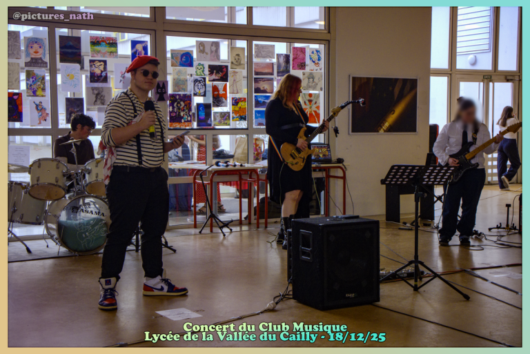 Mis à jour : mars 2026Le 18 décembre 2025, le Club Musique a pu se réunir de nouveau lors des festivités pour une heure de concert dans l’agora du lycée. Nous avons eu le plaisir de retrouver un public enthousiaste et conséquent, pour présenter ce que nous avons pu accomplir en ce début d’année scolaire. Pas moins de 200 personnes, personnels et enseignants comme élèves, ont été au rendez-vous, pour encourager et féliciter les membres du groupe, qui ont donné leur maximum pour offrir une prestation digne et (…) -