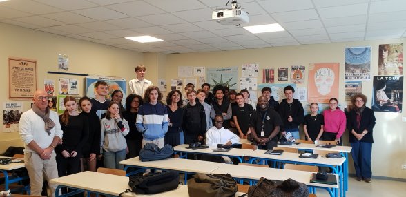 La classe de 1G6 de Mme Cambos a accueilli Koku Topko, président de l’association Avi-Togo et Rémy Binet, bénévole très engagé (il repart bientôt pour une mission de deux mois). Dans le cadre du cours d’EMC (Enseignement Moral et Civique), ils ont eu la gentillesse de venir présenter leurs actions au sein de cette association humanitaire internationale qui se donne pour mission la promotion du développement durable et l’amélioration des conditions de vie au Togo. Koku Topko, qui a reçu le prix du meilleur jeune leader en 2021 et 2022, a expliqué aux élèves que ce pays d’Afrique de l’Ouest souffre en effet d’une grande pauvreté : 42% de la population vit en-dessous du seuil de pauvreté. L’association intervient ainsi dans différents domaines : * l’éducation, avec l’ouverture de 4 orphelinats qui accueillent 70 enfants et la mise à disposition de kits scolaires pour les plus (…)